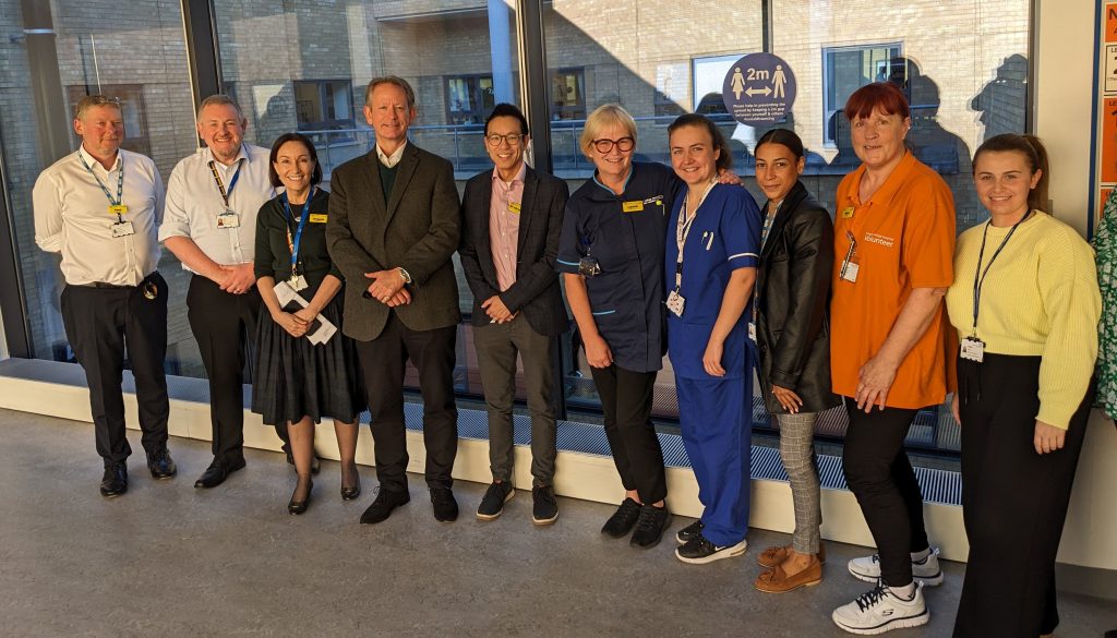 Dr Adrian Li, Consultant in Diabetes and Clinical Lead, who led the visit explained that RAID has significantly reduced hospital admissions and DWARD has reduced length of stay, all while maintaining patient safety standards. The bespoke cancer clinic has also reduced cancelled procedures and allowed patients with diabetes to receive timely and vital cancer care. Mr Bacon, who met with a range of staff across the team, also heard of the formalised preoperative assessment pathway. This has been established to support patients in managing their diabetes effectively ahead of surgery, reducing cancellations and improving outcomes as a result.