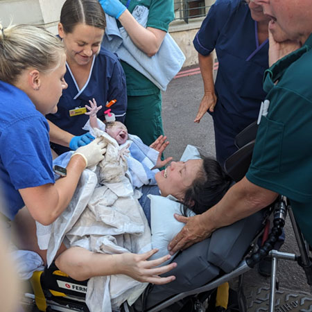 Staff from both departments teamed up to rapidly deliver baby Ted James in the hospital’s car park, after his mother Nina’s labour progressed faster than anyone imagined.